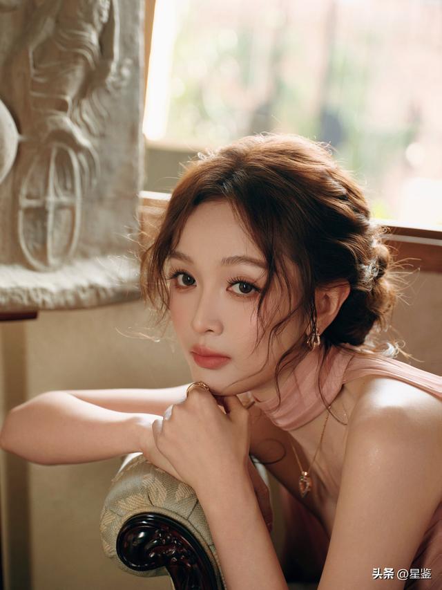 她的搭配思路特别值得参考:不堆砌繁杂的配饰,只靠一条细链、一对小巧耳饰和同色系的闪钻高跟鞋点缀,既保留了温柔的基调,又添了精致的贵气感。头发松松地挽成低发髻,留几缕碎发修饰脸型,没有用力过猛的造型感,反而衬得整个人像从油画里走出来的少女。